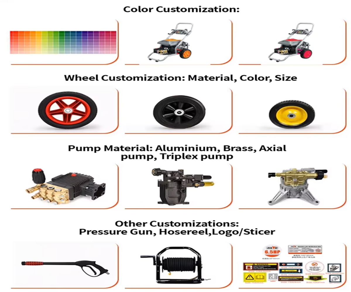 Da, podržavamo OEM i prilagodbu, uključujući boju, logotip, vrstu pumpe, kotače i dodatnu opremu.